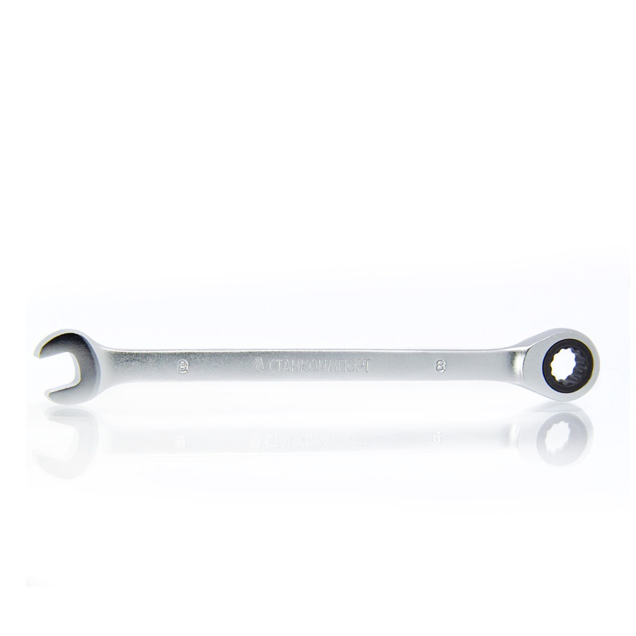 Комбинированный гаечный ключ представляет собой конструкцию, объединяющую рожковый и накидной профиль. Накидной профиль ключа имеет 72 зубый трещоточный механизм. Благодаря применению хромванадиевой стали марки 6140 и правильно проведенной закалке, механизм обеспечивает высокий крутящий момент. Малый (5°) обратный ход делает ключ незаменимым при работе в ограниченном рабочем пространстве.