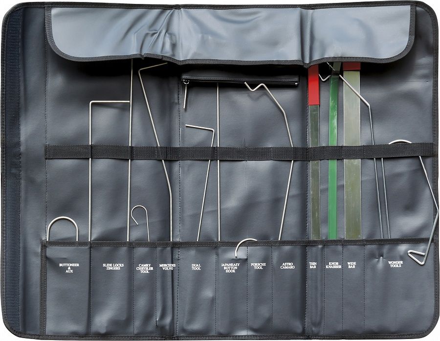 Набор включает все необходимые инструменты для открывания дверей автомобилей разных марок и моделей.