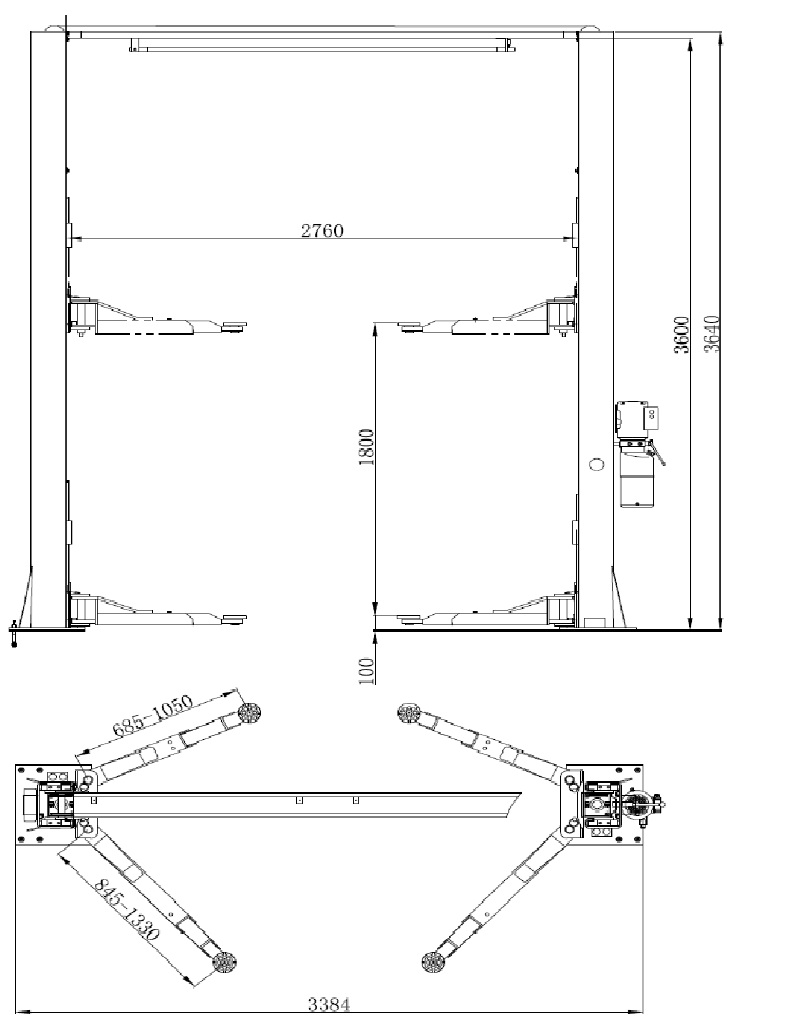 - Расстояние между колонами подъемника: 2400, мм