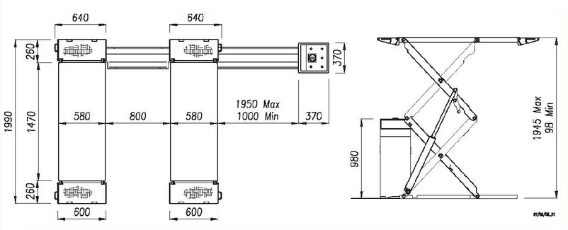 - Высота подъема: 1945, мм