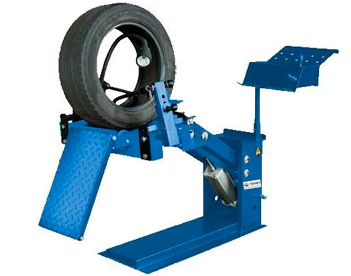 - Борторасширитель оснащен установочным столом и подъемником, который используется для фиксации шины, а также для расширения ее бортов и подъема во время ремонта.