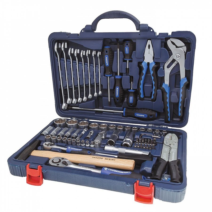 В наборе собраны инструменты общего назначения, необходимые для работы в гараже и быту.
